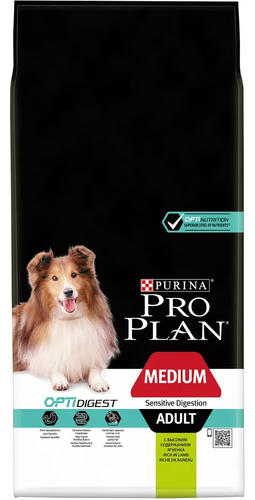 Pro Plan Adult Medium Sensitive Digestion сухой ГИПОАЛЛЕРГЕННЫЙ корм для собак Cредних пород 10 - 25 кг с чувствительным  Пищеварением (Ягненок)